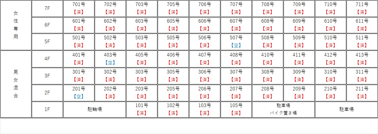 | 空室情報 | 201号(1K) 403号(1K) 507号(1K) |
